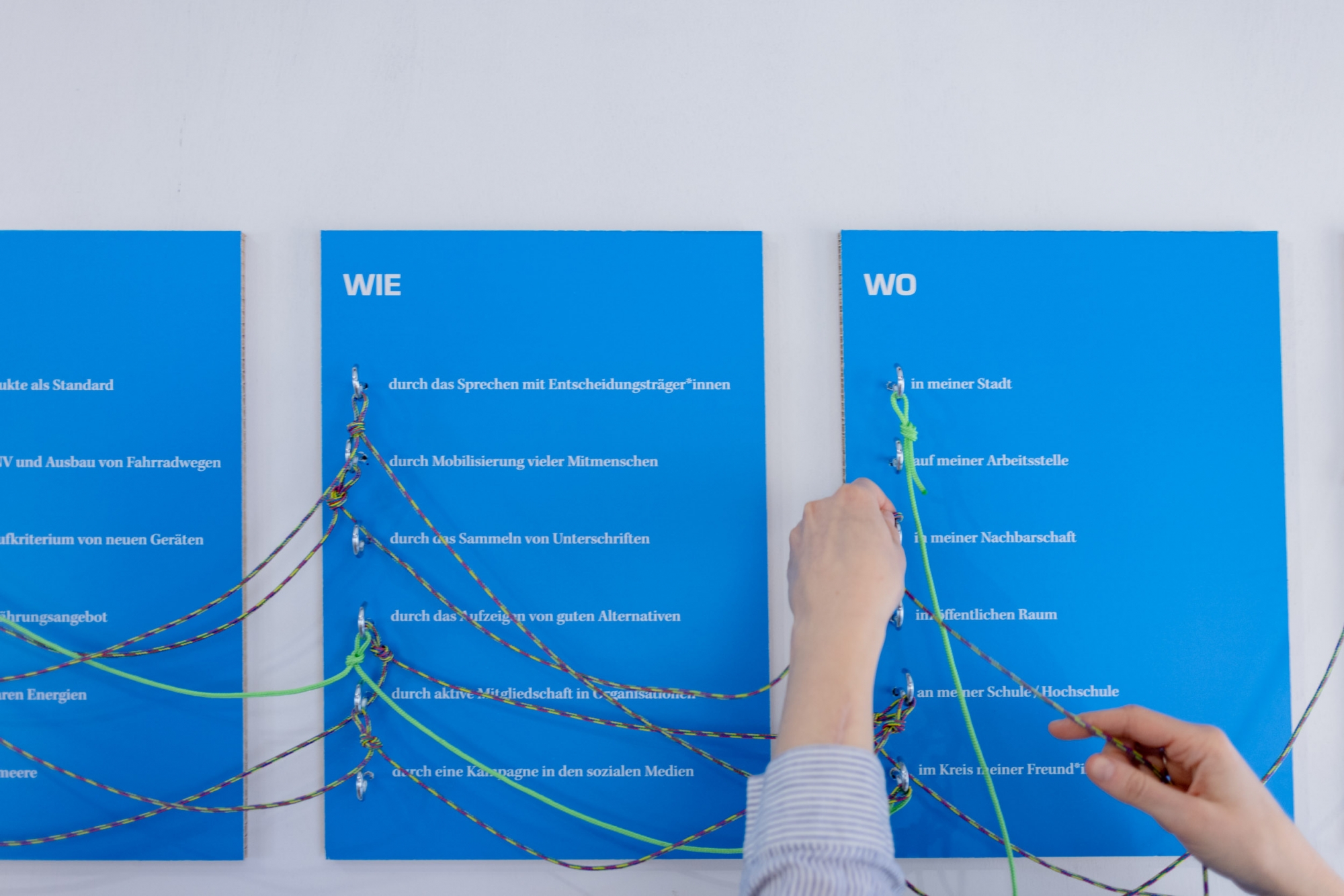 Wir alle sind gefragt, unser Handeln im Alltag und unser Konsumverhalten zu überdenken. Dazu laden interaktive Stationen ein. Neben der Auseinandersetzung mit den eigenen Fußabdruck geht es beim Handabdruck darum, nachhaltiges Handeln gemeinsam mit anderen zu verfolgen und es zur Norm zu machen.